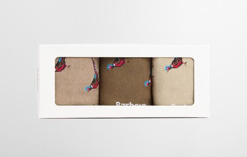Coffret 3 paires de chaussettes Barbour motif faisans.