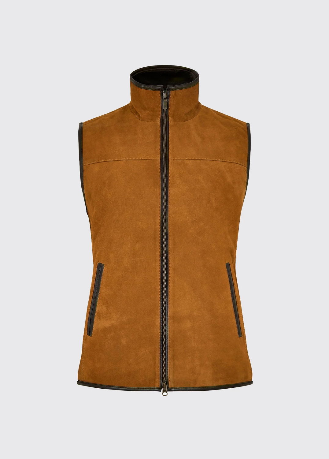 The Dunhill vest is a unique accessory made from very soft, walnut-colored leather with mahogany-colored details. It is quilted to provide the perfect balance between luxury and warmth. Featuring convenient interior pockets and fleece-backed front pockets, this outerwear piece adds a touch of streamlined finesse to your outfit when paired with a sweater and jeans.