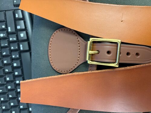 Il s'agit du prototype en photo, le cuir sera finalement plus cognac pour plus d'harmonie avec le lin, cuir de gauche sur la photo des cuirs (sauf si vous préférez celui du proto)