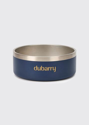 Gamelle pour chien en acier inoxydable, couleur marine, avec logo Dubarry doré.
