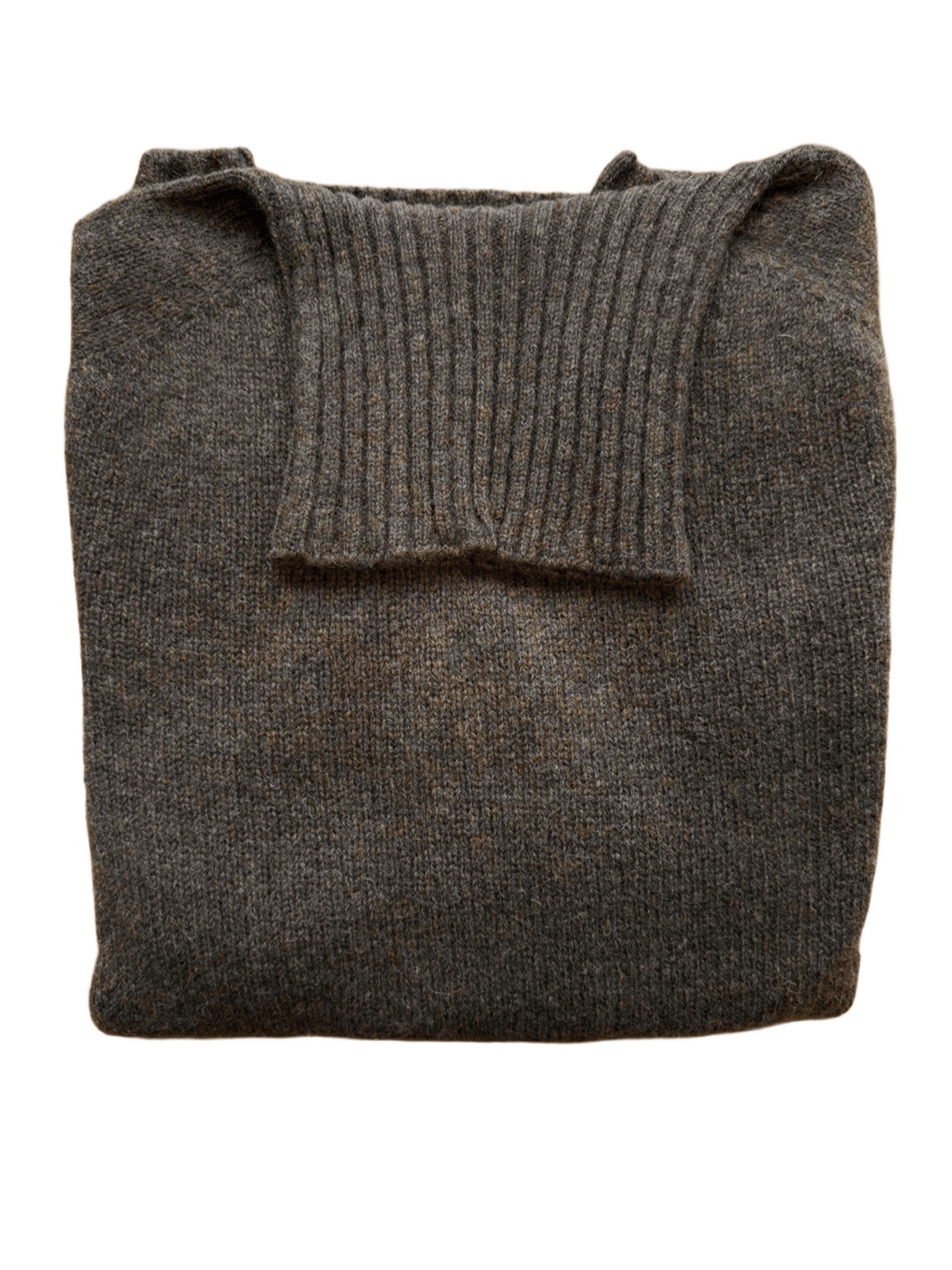 Pull col roulé de chez Harley of Scotland, ici dans le coloris moorland. (troisième coloris en partant du haut sur la pile en photo).