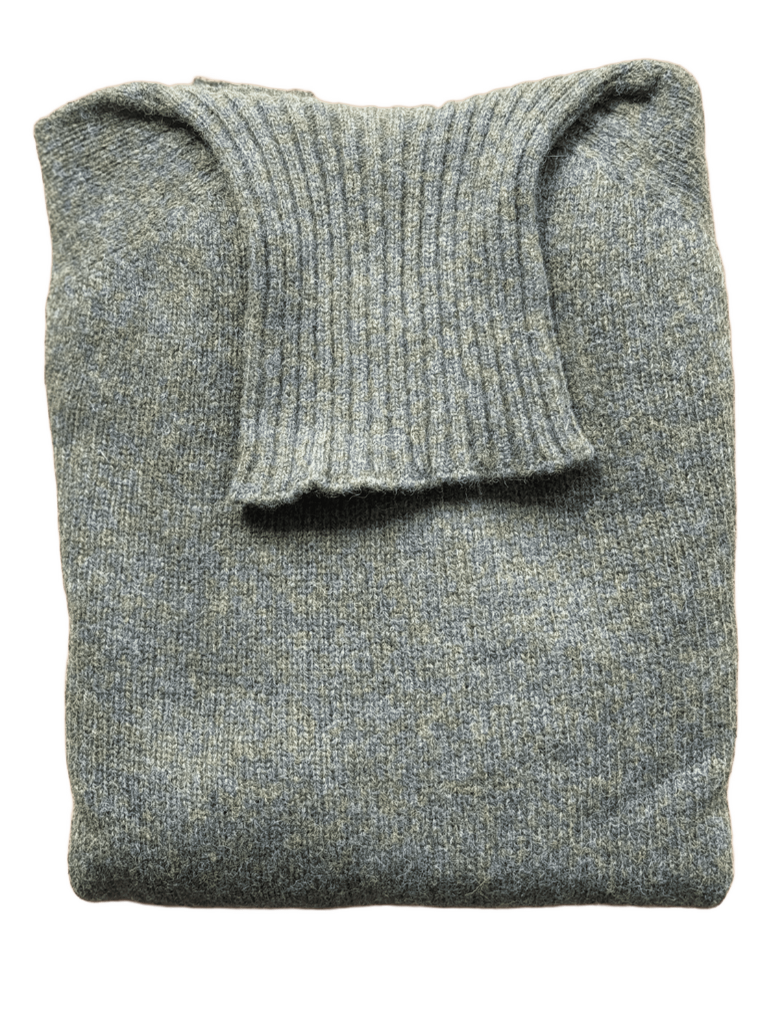 Pull col roulé de chez Harley of Scotland, ici dans le coloris scotspine (troisième coloris en partant du bas sur la pile en photo).