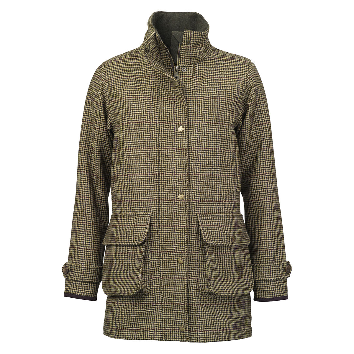 Élégant manteau de chasse pour femme, ornée d'un motif tweed Lily. Il est dotée de deux grandes poches cartouchières, de poches chauffe-mains doublées polaire et de poches intérieures. Son design allie fonctionnalité et liberté de mouvement à une allure élégante et féminine. Une patte réglable au dos permet d'ajuster la coupe. Il est également doté d'une fermeture éclair continue à double curseur sur le devant et d'une protection au menton.