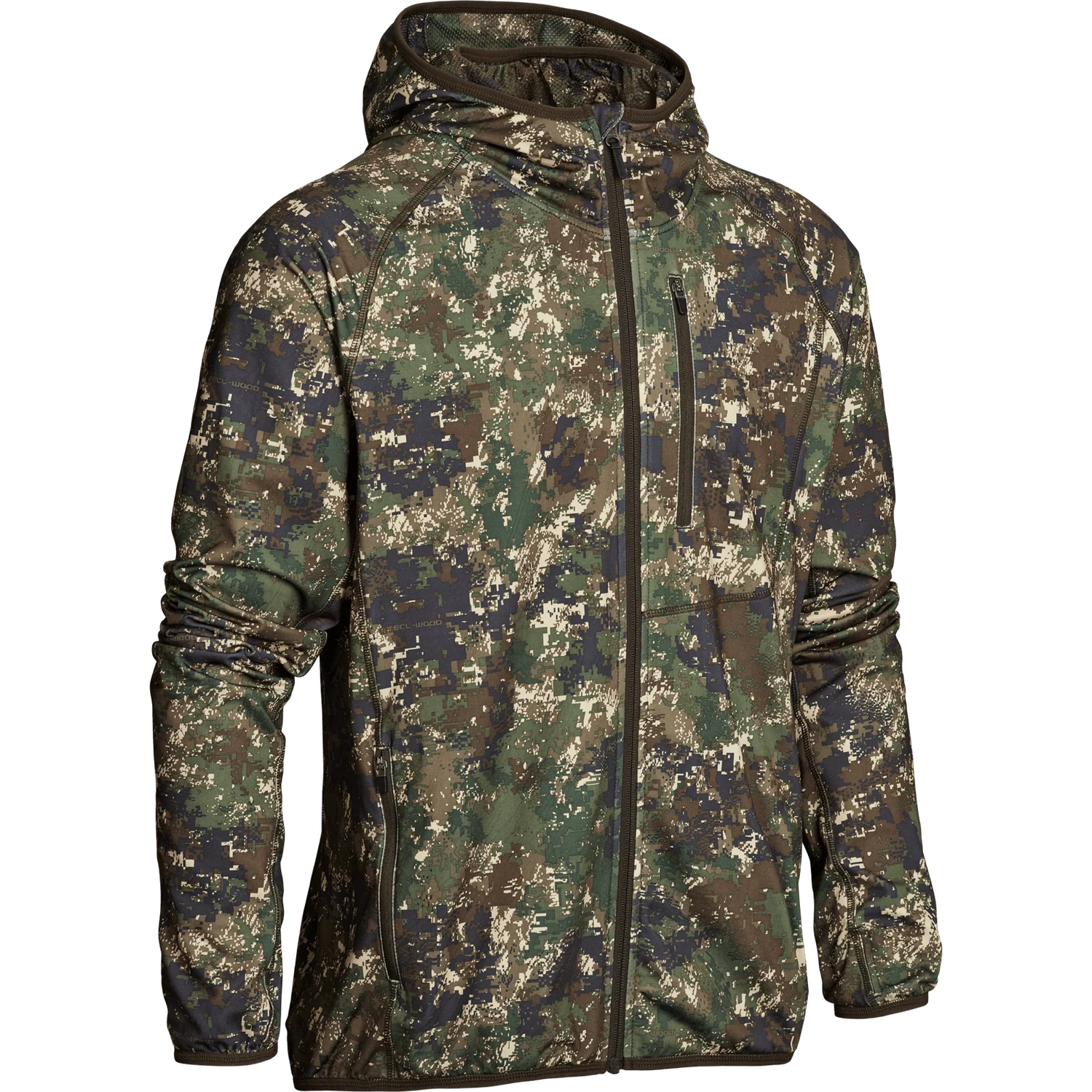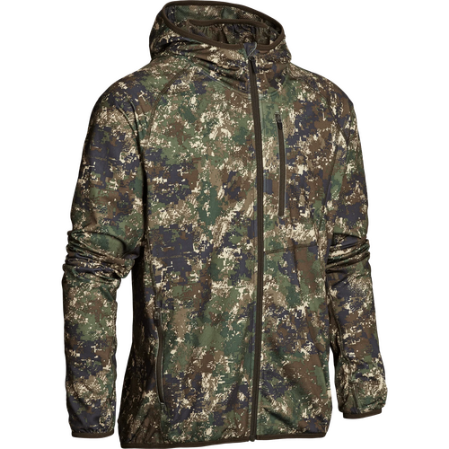 Alvar is crafted in the licensed TECL-WOOD™ Optima 2 camouflage print, making it ideal as a middle layer under a jacket or as an outer layer on mild spring days, perfect for stalking. With high stretchability for a comfortable fit, it also features an integrated facemask and a snug-fitting hood.