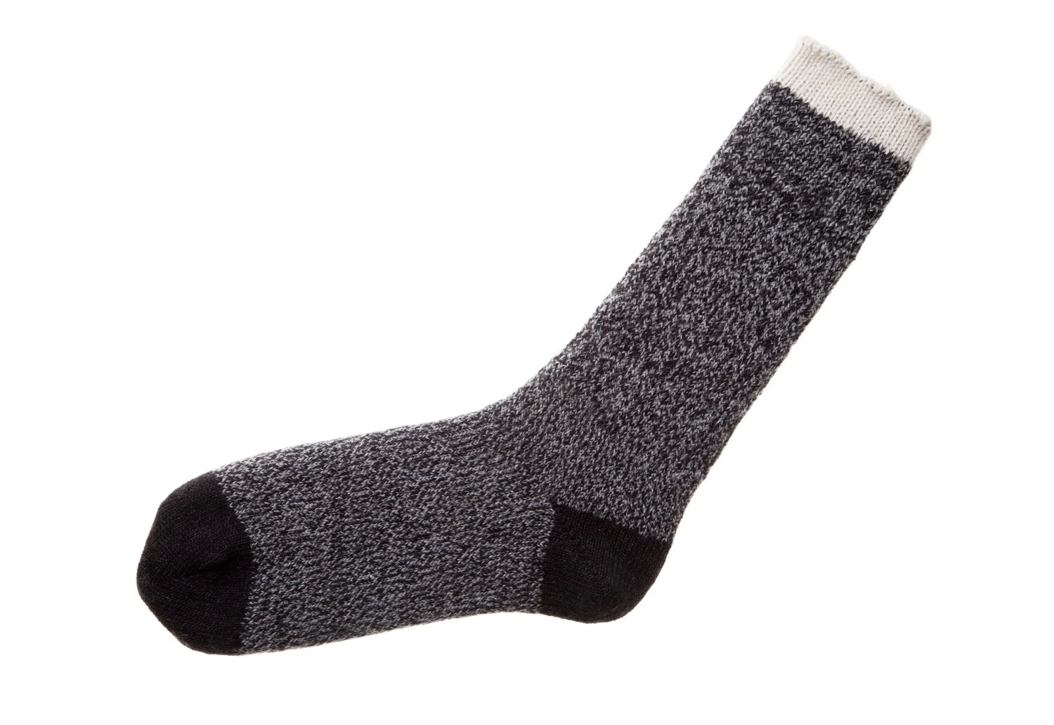 This pair of Patapaca socks feature a melange yarn combination and contrast color on ankle and toe. Alpaca is a naturally luxurious fiber which is super soft as well as warm and hypo – allergenic. These are crafted with a special blend of fibers which also make the socks anti microbial. One size fits all